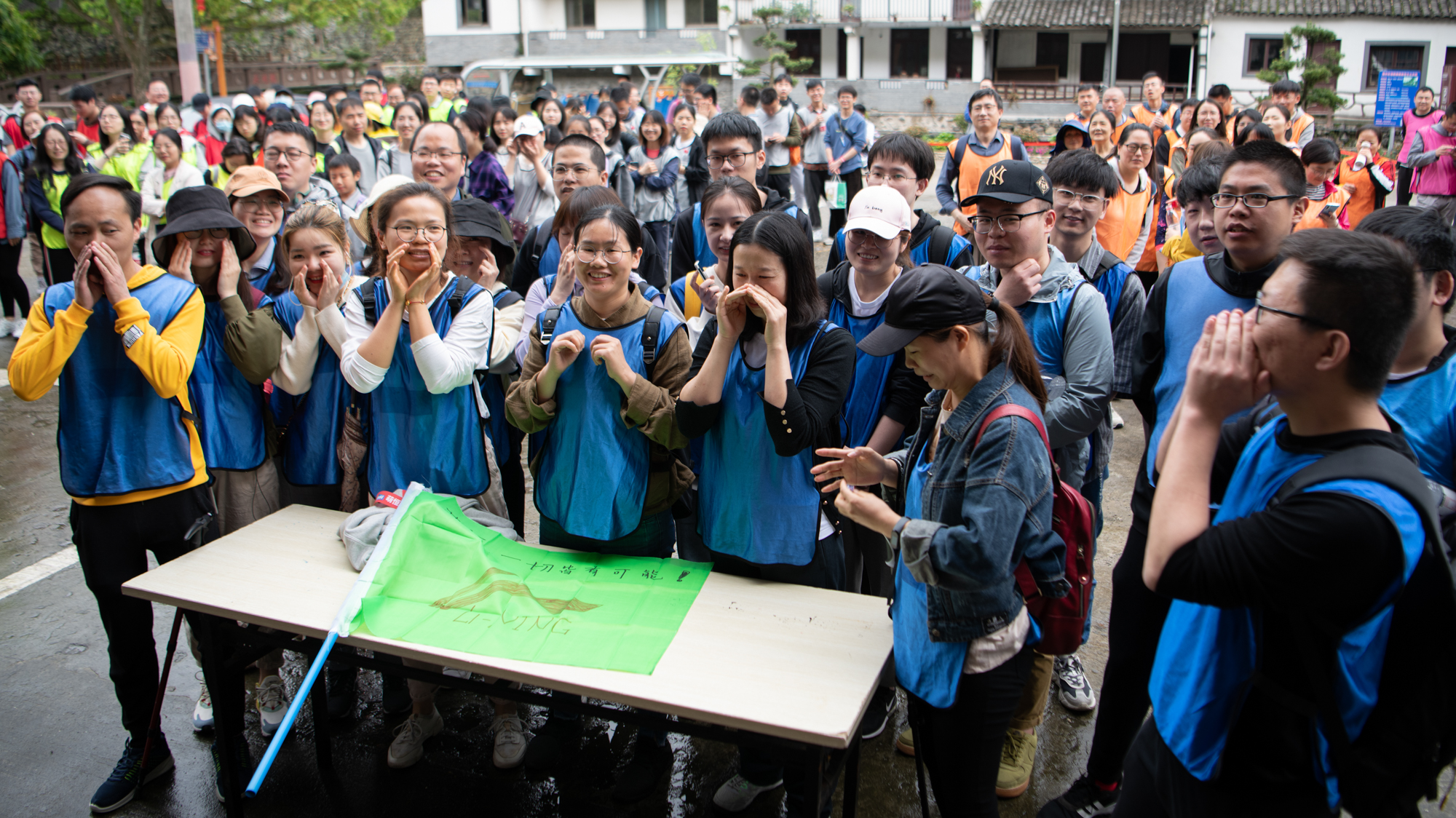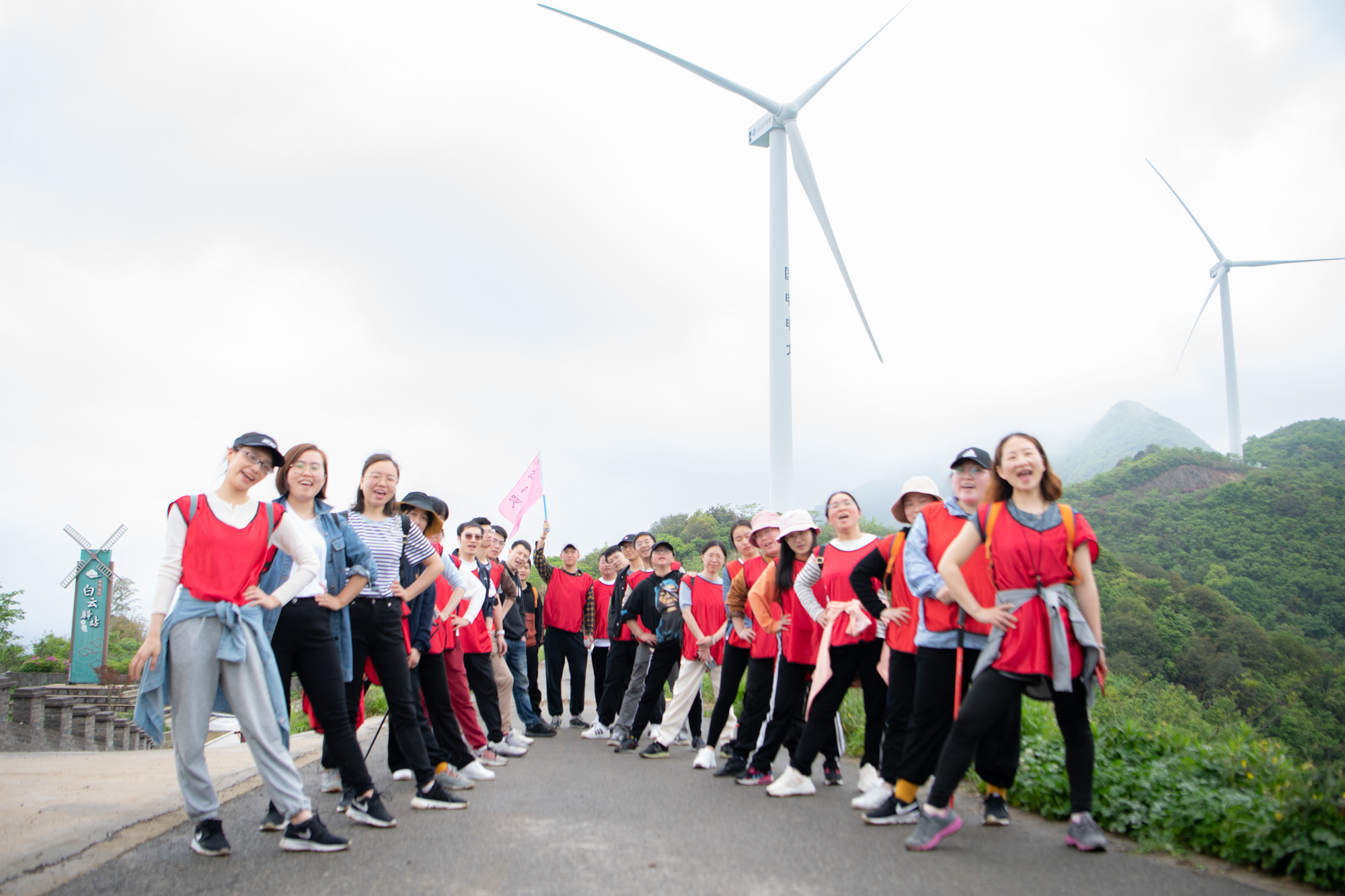 4月24日,150余位國貿(mào)員工也作為春季徒步團建的第一批隊,踏上綠意森森的塘溪風車公路,走過歲月沉淀的古村鄉(xiāng)落。