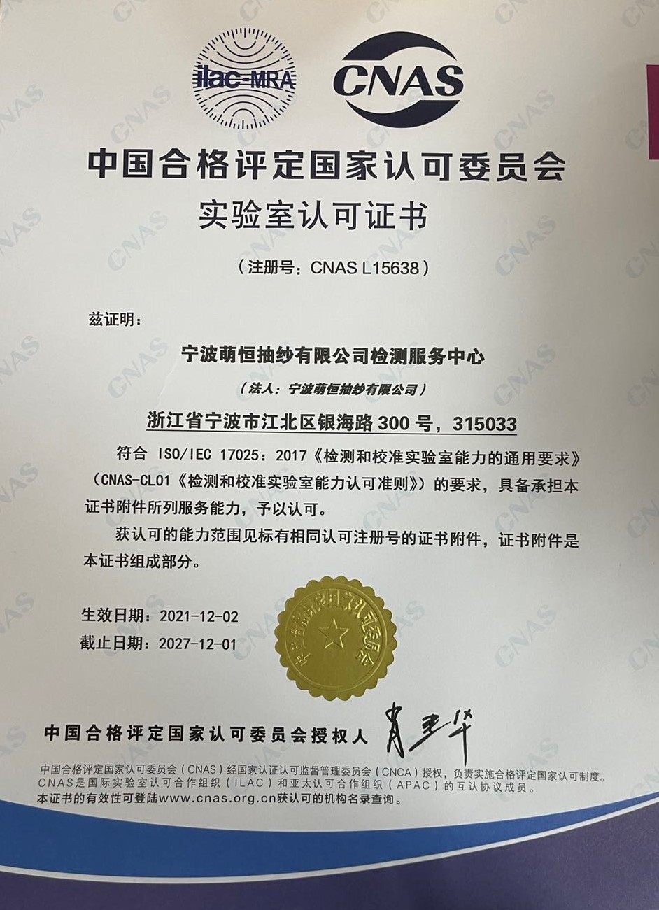萌恒抽紗有限公司檢測服務中心通過CNAS認證