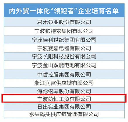 萌恒榮登浙江省第七批內外貿一體化“領跑者”企業培育名單