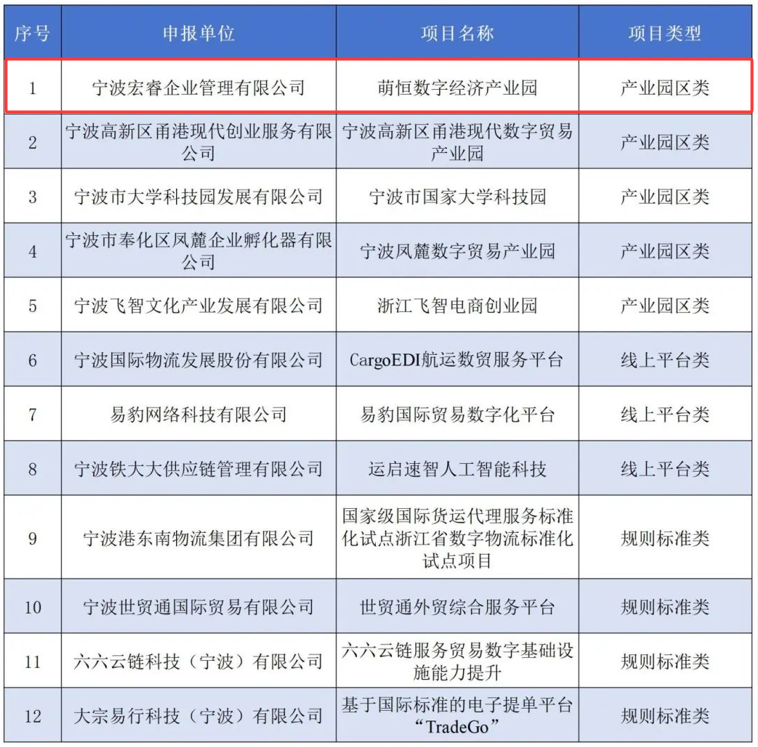 萌恒數字經濟產業園成功入選 浙江省數字貿易高質量發展重點項目
