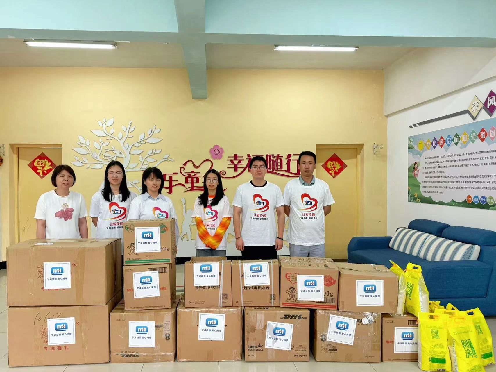為踐行社會責任,傳播愛心正能量,5月31日,在六一國際兒童節來臨之際,萌恒義工協會的志愿者們帶著熱水器、米油物資、零食、玩具,以及公司小伙伴捐贈的七箱衣物,來到位于奉化區錦屏街道的啟航歡樂園,與大小孩子們一起歡度六一。