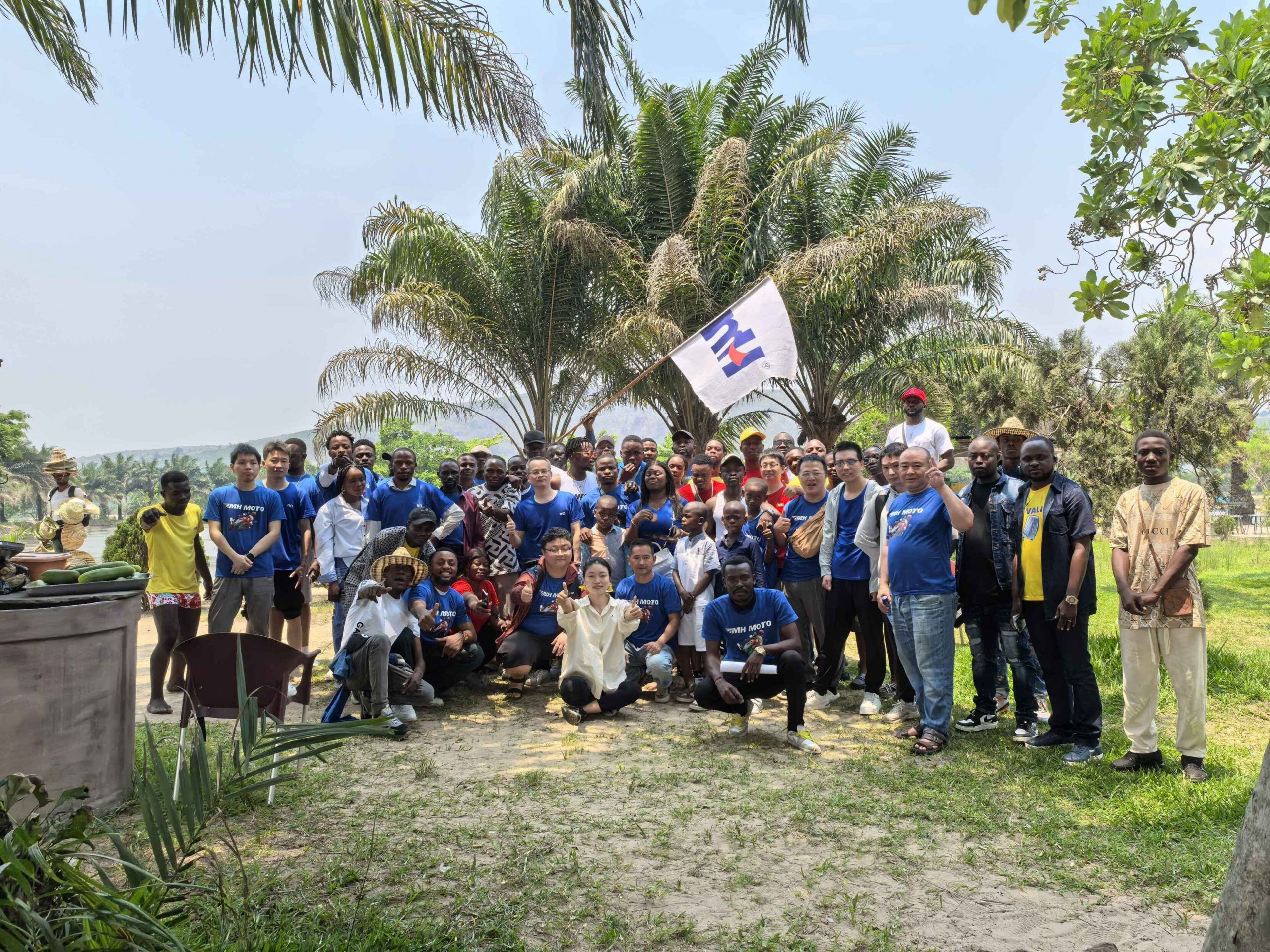 我們選擇在金沙薩一處河邊沙灘度假村開展活動。陽光明媚,微風徐徐,營造了輕松愉快的氛圍?;顒拥牡谝画h節是集體合影,在MH的旗幟下,大家紛紛擺出各種有趣的姿勢,記錄下這個美好的時刻。歡聲笑語不斷,彼此之間的距離在這一刻被拉近。